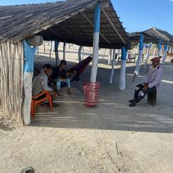 Ganz oben leben noch 17Wayuu Familien traditionell zusammen,wohl völlig ohne Strom Wasser Mobilfunk,leben vom Fischfang die Frauen und Kinder versuchen Taschen und Souvenirs zu verkaufen.An dem Stand waren Sonntag vielleicht 30 Menschen und mindestens genauso viel Wayuu Frauen,
