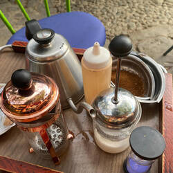Kaffee herstellen ist fast ausschließlich Handarbeit,der gute Kaffee geht komplett in den Export.zum Abschluss gab es noch ne Richtige Einführung im Kaffee kochen.na ja vielleicht ist spontan nicht immer angesagt,hatte mich schon ein bisschen geärgert,hätte die Tour gerne ganz mit gemacht alldieweil weil es eine wunderschöne alte Finka war ,mit ein bisschen da Pavillon,oder schöne pauseplätze in der Plantage,hätte es da bestimmt ein paar Tage genießen können und so wurde mir die Entscheidung abgenommen,zurück auf die Achterbahn………Læs mere