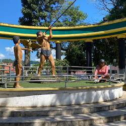 War es bisher eher flach so wurde es vor Tena richtig bergig 1000 Meter,ist nochmal ein ganz anderer Blick ,und in jedem Tal ein Fluss,tausende Wasserfällen,von bis ,alles dabei und auch die Flüsse von träge bis sportlich herausfordernd,unvorstellbare Mengen an Wasser.und da natürlich super schöne Bademöglichkeiten.,es werden sämtlich mögliche Wasser Sportwarten auch touristisch vermarktet.El Oriente wie es offiziell heißt und alles was da dazugehört und da lebt (steht an jedem neuen Bauwerk) wurde ab 2019 mit viel Geld viele völlig unnütze Projekte,die Region touristisch attraktiver zu machen,und glaube als vieles gerade fertig war kam COVID-19,der Zerfall beginnt bei der Fertigstellung,an manchen Orten besonders schlimm,Gerade durch den langen harten lockdown, und vermutlich klein Geld vom Staat ging und geht es hier noch sehr vielen richtig schlecht.Es wird hier kaum wie früher werden.