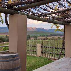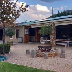 Fortunately, Sparky, the owner, stepped in to do the tasting with us. We got started at about 5.40pm. We had 6 wines 🍷 to taste - a chenin blanc, a pinotage, a shiraz, a sweet rose, a sparkling rose, and a fortified wine, along with some brie, a blue cheese, some camembert, and a cheddar with sweet chilli 🌶. We enjoyed the chenin and the two reds, but the rest were too sweet for our taste! We bought a bottle of the pinotage and impressed our fellow travellers by drinking it out of the proper glasses we were given at Constantia! No plastic cups for us on this leg - at least, not until we break the glasses! 😂