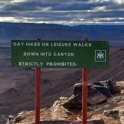 We left Henry behind to prepare dinner. Patrick dropped us off. We had a 2.5 kilometre walk to a sunset viewpoint where he would pick us up again. We could go at our own pace. We began by walking up to the edge of the canyon for our first view of it in all of its splendour. There was a real wow factor as we looked down in to it.