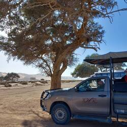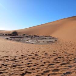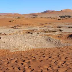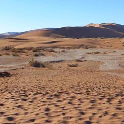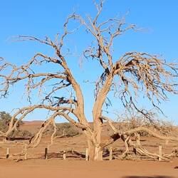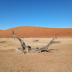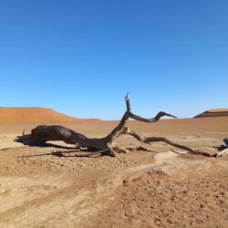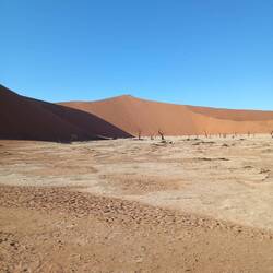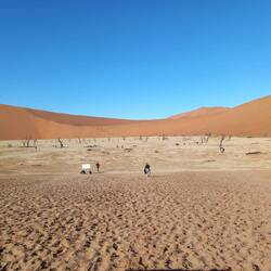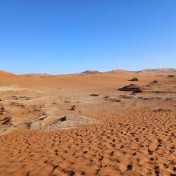 We parked in the car park and transferred to 4x4 vehicles for the drive to the start of the hike to Deadvlei. The scenery on the way was stunning. The hike was not particularly long (about 4km there and back), but it was steep in places, and the soft sand had our calf muscles aching! For me, it was easier to do it barefoot! It was worth it, though, for the sight of the flat pan and the dead trees standing there. Some trees had fallen over because tourists had touched them or climbed on them. This was despite the signs telling them not to!Read more