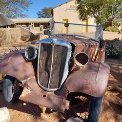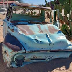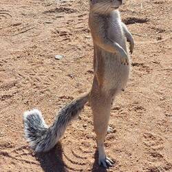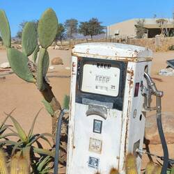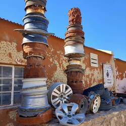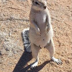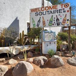From Deadvlei, we continued our drive, stopping at a one-house town called Solitaire for toilets and to stretch our legs. It’s a crazy place with broken-down cars and petrol pumps around the grounds and an on-site bakery started by Percy Cross, aka Moose McGregor. The bakery is famous far and wide for its apple pie. Most of us tried it. It was still warm from the oven and tasted really good! Just as we were going to get back on the truck, we saw some strange-looking animals behaving just like meerkats. They turned out to be ground squirrels. They were happy to pose for us! 😊
