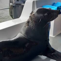 On board the boat, we had a quick briefing from Eduard before setting off. One of the crew was throwing fish from the back of the boat, so we were joined on board by Peekaboo, a young male seal who regularly rides on the Mlandra. There is some controversy about the ethics of feeding the seals, but all I can say is that they don’t seem to suffer because of it, and there is strictly no touching of the animals allowed.