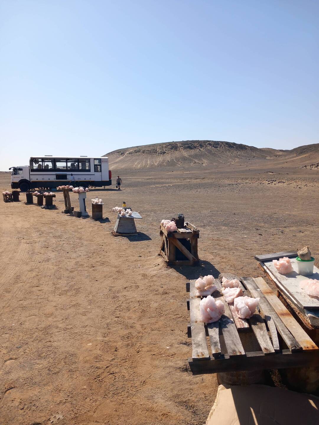 A short drive further on, we stopped in a layby for lunch of salads, sandwiches, and oranges with the inevitable ‘bushy bushy’ – except there were no bushes! 😂 There were large rock saltLæs mere