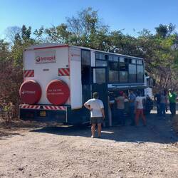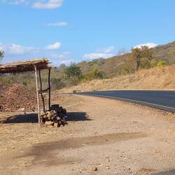 We then drove on through the Zambian countryside. Many people in rural areas make a living from producing charcoal, so swathes of land are black and burnt. Even though there is obvious poverty inLes mer
