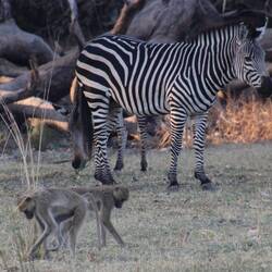 We were up at 5.0am for a light breakfast of coffee and cereal before our early morning game drive. We were very happy not to have to take our tents down! At 5.45am, our two 4 x 4s arrived and weOkumaya devam et
