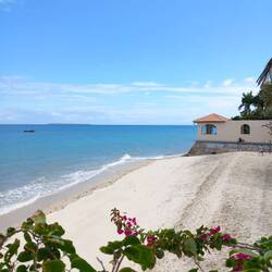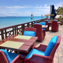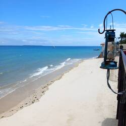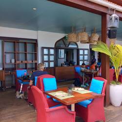 The crossing took 90 minutes. By the time we arrived on the island, the rain had stopped, the sun was shining, and the temperature was soaring! Getting through immigration involved a lot of pushing and shoving. Mark got into an altercation with a very rude Frenchman who hadn’t filled in the correct landing form. He was holding everyone up and complaining that he was being pushed from behind. He blamed Mark for shoving him. It wasn’t our fault! I told him in no uncertain terms to calm down!!