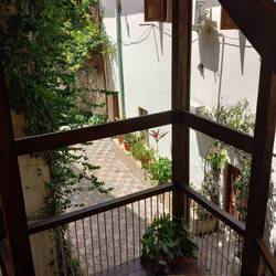 The hotel is down a narrow alley in the heart of the old town. We had to walk the last couple of hundred metres. Mark was really struggling as his ankle has swollen up for some unknown reason! We were too early to check in, so we stored our bags and were directed to the pool area to wait until our room was ready. First impressions of the hotel were really good – an oasis of green and calm a few steps away from the busy alleyway. It reminded us both of the medina in Fez!