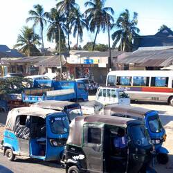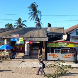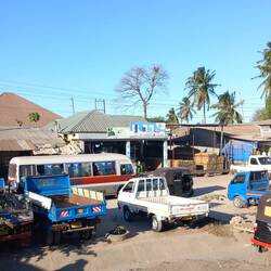 Once on board, we went to sit up on the top deck and spent the 90-minute crossing chatting to Luke from Australia. We found we had lots in common. When we arrived in Dar-es-Salaam, we had a wait and then a scramble to retrieve our luggage. Having got it, we were shown to a very rickety old bus for the journey to meet up with our truck. We were stuck in traffic for a while, so the short trip took well over an hour. We met the truck in the car park of the same shopping mall we had stopped in before we went to Zanzibar. We had 20 minutes to use the loos and grab something for lunch. It was already 3.30pm, so we were well ready for something to eat!