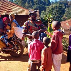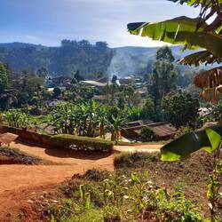 We walked through stunning landscapes, where every square metre was planted with fruit and vegetables. Being a Sunday, we saw church services going on, as well as Muslim ceremonies and festivals. It was lovely to see the Christian ladies dressed in their Sunday best and the Muslim ladies in their colourful hijabs. The bright patterns contrasted perfectly with the vivid green foliage of the surroundings. We also walked through a pine forest that seemed incongruous compared to everywhere else. It was all very interesting.Leer más