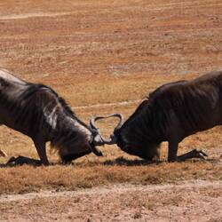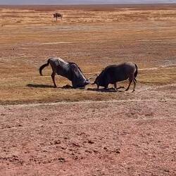 • Hundreds of wildebeest, including a couple of juvenile males who were butting heads