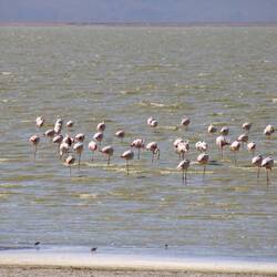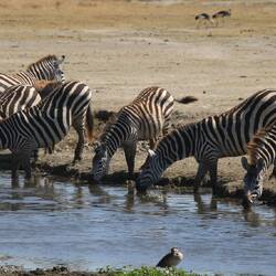• Lots of zebra drinking at the point where Lake Magadi changes from salt to fresh water