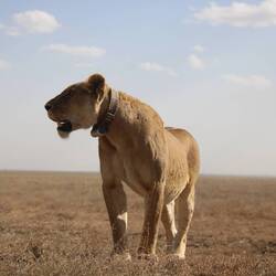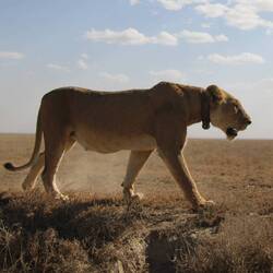 We saw a lioness who had just finished an unsuccessful chase of a young impala. She was wearing a collar, indicating that she is part of the park’s conservation programme.