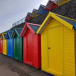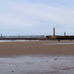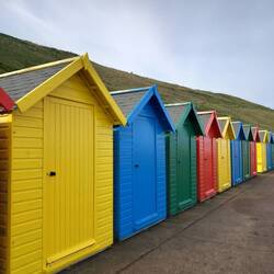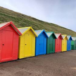 From West Cliff, I walked down to the beach. I couldn't resist taking loads of photos of Whitby's famous brightly-painted beach huts!