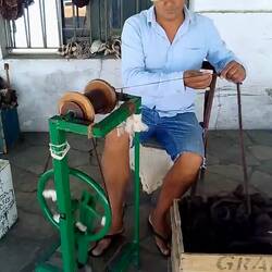 There, we met a guy who was spinning sheep wool into yarn using a manualLeggi altro