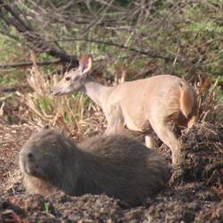 South American AdventureShow tripAdd to bucket listRemove from bucket listShareDay 136Saturday, February 15, 2025 at 8:30 AM ☁️ 28 °C Altitude: 177 ft ArgentinaLaguna Iberá-28.49974, -57.1530228°29’59” S 57°9’11” WClose up to a deer on Lake Ibera February 15 in Argentina ⋅ ☁️ 28 °C 2 likes Show trip