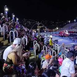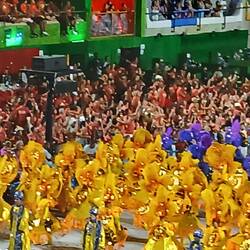 There was a huge security presence on the streets. All access to the Metro station was restricted to one funnelled entrance. There were a lot of people about, but everyone was in a good mood. The atmosphere was of a relaxed, happy party. Our journey to our stop for the Sambadrome passed without incident. Finding 'sector 9' where our seats were, proved somewhat difficult, though! We got there eventually, having asked several police officers and security personnel on the way. Google Translate is a godsend!