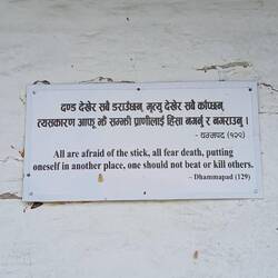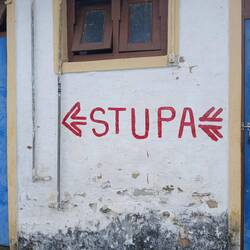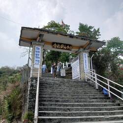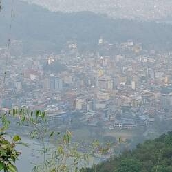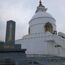 Back on the bus, we were taken to the World Peace Stupa. We were dropped off at one side, had to climb up to see the monument, and then descend on the other side to the bus park. It was quite a hike!Læs mere