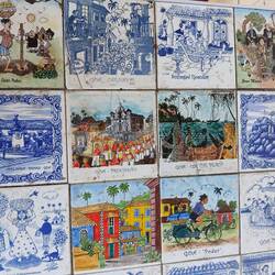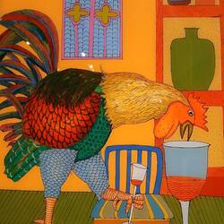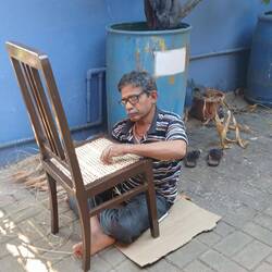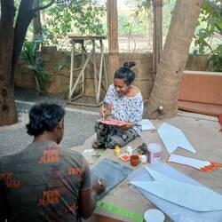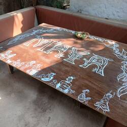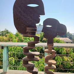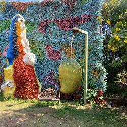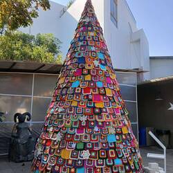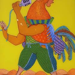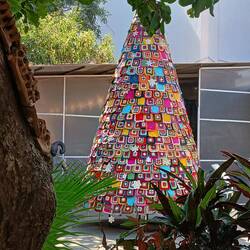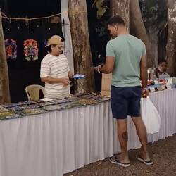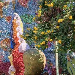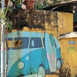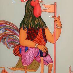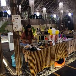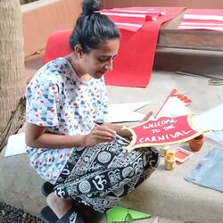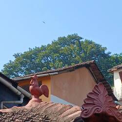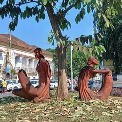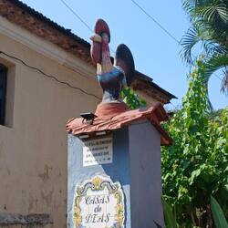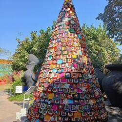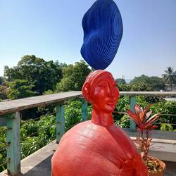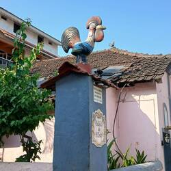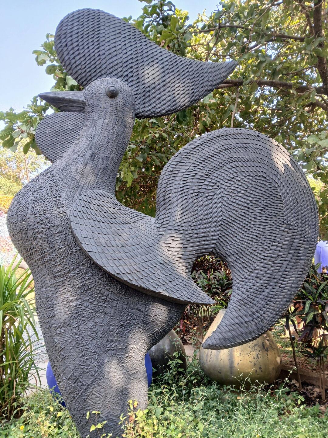 The last work I want to highlight is Rooster by Subodh Kerkar. This 11-foot-tall rooster is made of fibreglass and covered in rubber tyres in the typical style of the Portuguese symbol, usually madeLeia mais