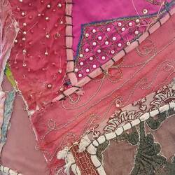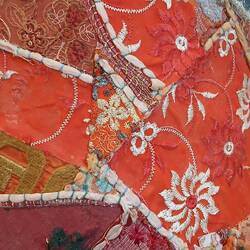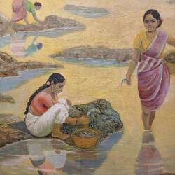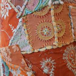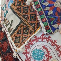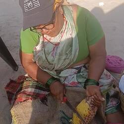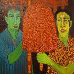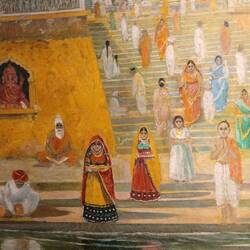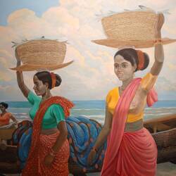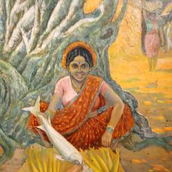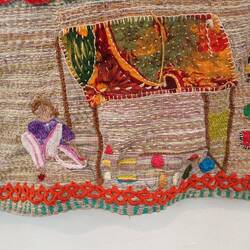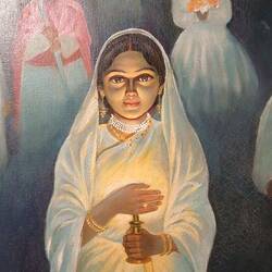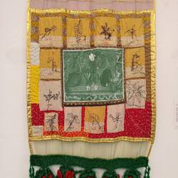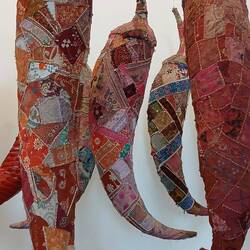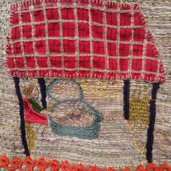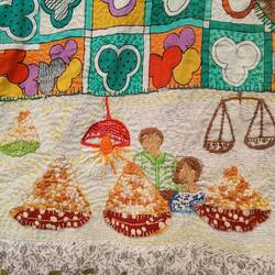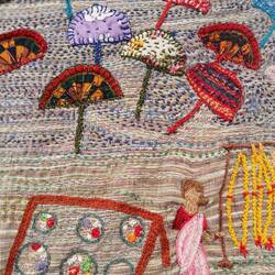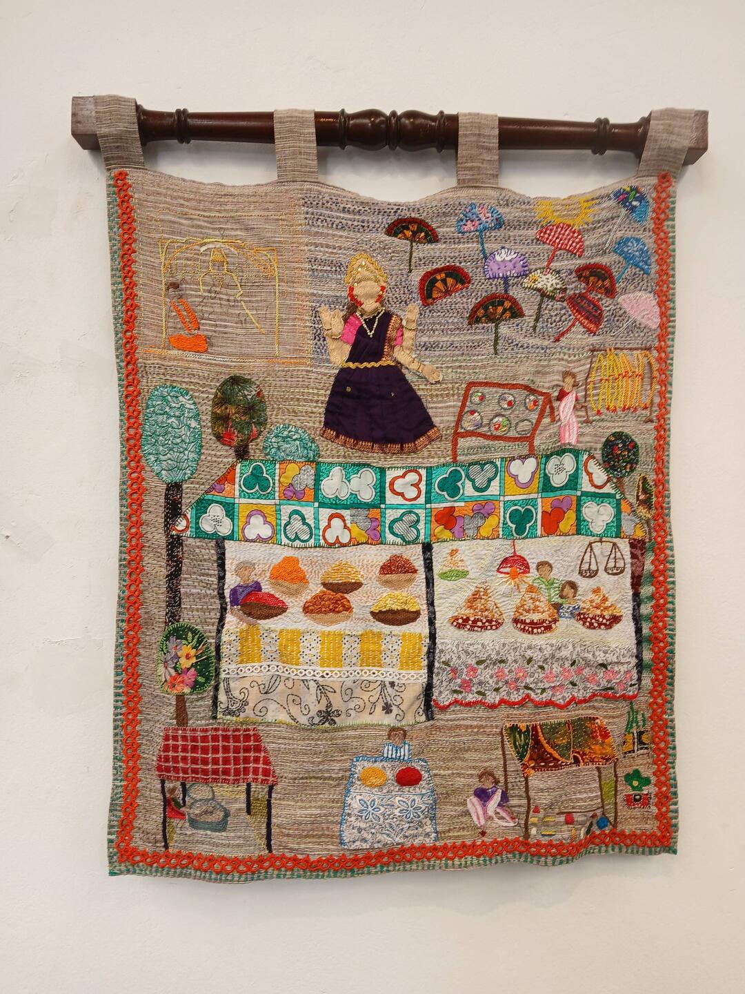 Mhammai Zatra by Savia Viegas is a mixed media piece on khadi, a hand-spun, hand-woven fabric promoted by Gandhi and symbolising India’s self-reliance and resistance to British colonial rule. It hasLeia mais