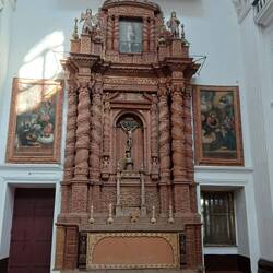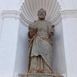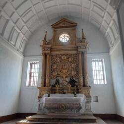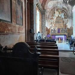 Our last stop on our heritage walk was at the Basilica of Bom Jesus. Construction began in 1594 and was completed in 1605. This Jesuit church is simple in style and has had its white exterior paintLeia mais