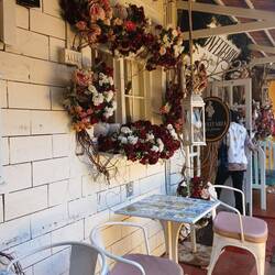About half way through our walk, we stopped at the Confeitaria 31 de Janeiro, a gorgeous bakery with flowers and colourful tiles on the tables. It was the perfect photo opportunity for all theLeia mais