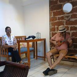 Our final stop on our heritage walk was at the Balcao Café, where we had a drink (again, it was something very sugary so I only had a sip) and listened to Maxie Miranda, a local muscian who playedLeia mais