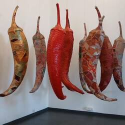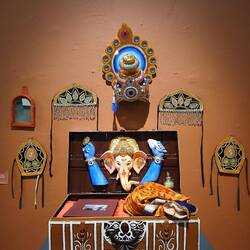 Another eye-catching exhibit is Matoli, the canopy held above Lord Ganesha that is created during Chawath, the festival of Ganesh Chaturthi. The making of it is a deeply collaborative act rooted inLeia mais
