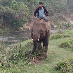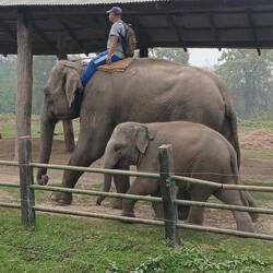 As we walked deeper into the jungle, Laxman pointed out many different bird species. By the water's edge, we saw spotted deer. We watched more working elephants being ridden back to their stablesRead more