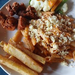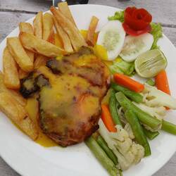 After the visit to the breeding centre, we returned to the hotel for lunch. It was very similar to yesterday. It was tasty, but I'm not sure it all belonged on the same plate 😀.