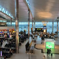 I had my pre-paid breakfast and was on the National Express bus to Heathrow by 7.45am. We got caught in the inevitable rush-hour traffic on the M25, made worse by an accident caused by torrential rain, but we still arrived in plenty of time. I had already checked in online for my flight, so it was just a matter of dropping off my bag and clearing security. My carry-on bag attracted the attention of the customs guys, who confiscated my bag strap because it had metal inside it, and they felt it could be used as a weapon! That's a new one - it's the same strap we took to Africa and South America! They did suggest that I could go back and check my bag in, but I politely refused 😊.
