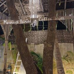 I slept for about 4 hours and then got up and unpacked. I can certainly make the space work for the next few weeks. I then went for dinner in the on-site cafe. I had chicken curry with a roti and the best jeera rice I've ever eaten. There was enough to feed a family, so the waiter offered to box it up for me. That's tomorrow's dinner sorted out! After dinner, I chatted to Niha, the resident artist, and her partner, who plays music here every Saturday.