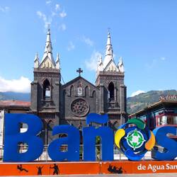 After this stop, we returned to Banos. We dropped some of our stuff at the hostel and went out for a wander. We had intended to find a supermarket and buy ingredients to cook for ourselves, but weLue lisää