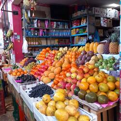 Afterwards, we walked up through the back streets to the church. It was a gloriously hot, sunny day. We found some interesting street art to photograph, and I used my newly acquired Spanish (I'm studying with Duolingo) to ask a road sweeper where the city market was. He understood my question, and I understood his reply - miracles do happen! At the market, I bought some blueberries. Peru grows huge amounts. Consequently, they are very cheap - about 40p for half a kilo!Leia mais