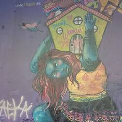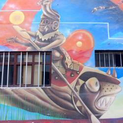 Back at the hostel, Mark decided he'd done enough walking for one day and the others who'd put their names down for the street art tour around Barranco dropped out, too, so I went alone.  This time, it was a shorter walk to the meeting point, and a shorter bus ride to get to Barranco.  Once there, our guide, Kevin, led us on a route to show us the best of the street art in this Bohemian district.