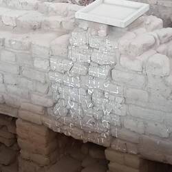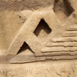 Many of the later bricks used in the structure bear one of more than 100 different markings, perhaps corresponding to groups of labourers from different communities.  It is thought that each team was assigned a mark to put on their bricks.  These were used to count the number of bricks laid for financial and competitive purposes.