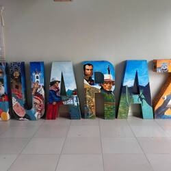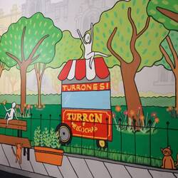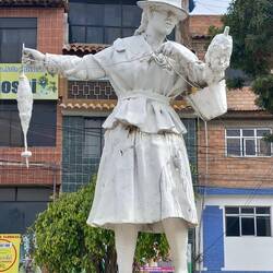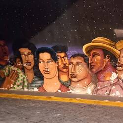 Notable examples include a portrait of Susy Dias, a former stripper and starlet who moved from reality TV appearances to being elected as a congresswoman.  I also loved a painting of a cuddly guinea pig wearing a coat with the tagline 'Eat fruit'.  This is on display outside a restaurant serving cuy (guinea pig)!  There is also a mural of an indigenous woman carrying the weight of all her responsibilities on her shoulders - the home, the family, cooking, cleaning, education, and more.