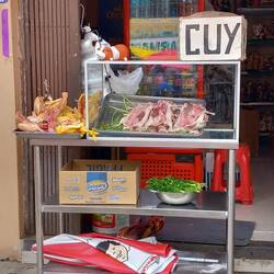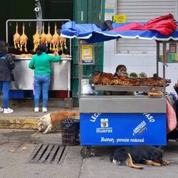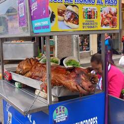 Before long, we found ourselves in the central market.  It was a hive of activity with locals doing their daily shop for fresh fruit, vegetables, meat, and fish.  There was so much choice and everything was ridiculously cheap!  Once again, we passed on the guinea pig!  We were very tempted by the delicious looking roast suckling pig with crispy crackling, but it was a bit too soon after breakfast.  You could get a pork and salad roll for just 2 soles (about 40p)!  I did buy fresh strawberries, blueberries, and raspberries to take on the truck tomorrow.