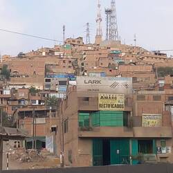 We stopped for lunch (we had our pack up) and then continued on the coast road to Lima.  We still had 200km to go.  We couldn’t see much of the surrounding countryside as it was very misty.  However, as we got closer to the capital, there were more settlements.  Many of them had the appearance of shanty towns with thousands of shacks tightly packed into a small area.