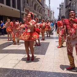 After the tour finished, we had intended to stay in the historic centre and visit the catacombs.  However, time was moving on and some of us had booked another tour which started from the hostel at 4.30pm.  So, we decided to travel back to Miraflores with Ruby.  When we got there, Marina, Trudi, Mark, and I went to a local restaurant for lunch.  We chose it as there were people queuing around the block to get in.  We figured that it must be good!  It was a big restaurant, so it only took about 20 minutes to get a table.  They specialise in soups and chicken, as well as delicious breads freshly baked on the premises.  It was all very good - we certainly wouldn't need to eat again for the rest of the day!Leia mais