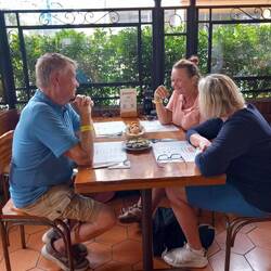 With our coffers refilled, we made our way to the California Café.  This quirky eatery was recommended in my guidebook and on blogs I read.  When we arrived, Susan and Marina were already there and before long, we were joined by several other group members.  It seems we all had the same idea!  We ordered coffees and sat chatting for an hour or two.