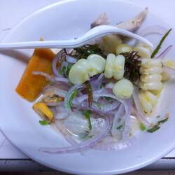 Our next food stop was for ceviche, a local speciality. It was delicious!! And only 6 soles (about £1.20) for a bowl. It was washed down with a free glass of chicha morado, a traditionalOkumaya devam et