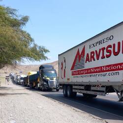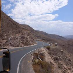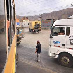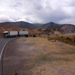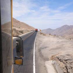 Some lorries and buses coming towards us were sprayed with graffiti so we knew there was trouble ahead. Before long, we saw protesters in the road holding a huge Peruvian flag across theOkumaya devam et