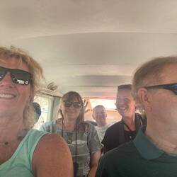 As we came out of the museum, surprisingly Ritchie was driving the truck up the road towards us! He had played the tourist card and the protesters had let him through!