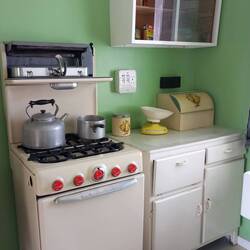 Our next stop was at the recently-built 1950s houses. There was so much in these that was very, very familiar!! We were both taken straight back to our childhoods, especially in the kitchens where theLeggi altro