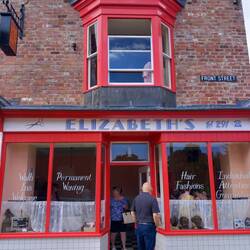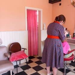 Behind the houses is a parade of shops on Front Street Terrace. I was particularly taken with the hairdressers as that was my Mum's profession. The trolley with the box of hairgrips and pins forLeggi altro