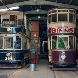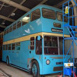 Our next stop was at Beamish's Northern General Transport Bus Depot. This exhibit can accommodate up to eight buses. Visitors can watch the museum's maintenance staff working on its fleet of periodLeggi altro
