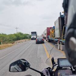There was a lot of excitement outside Matamoras as truckers were at an impasse with the demonstrators. With Haukur's savvy maneuvering, it didn't slow us down much.