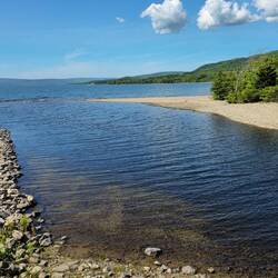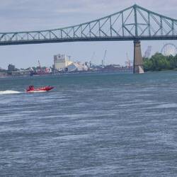Die Reise geht weiterhin am Sankt Lorenz Strom entlang. In Quebec konnte man den Strom auf einer relativ kurzen Brücke überqueren. Jetzt kann man mal wieder kaum das andere Ufer sehen. Immer wieder münden Flüsse von der Größe der Oberweser in den Sankt Lorenz Strom. Er muss relativ viel Wasser führen. Er ist auch mit Ozeandampfern befahrbar, man sieht aber fast keine Berufsschiffahrt. Auch Sportboote sind wenig unterwegs.